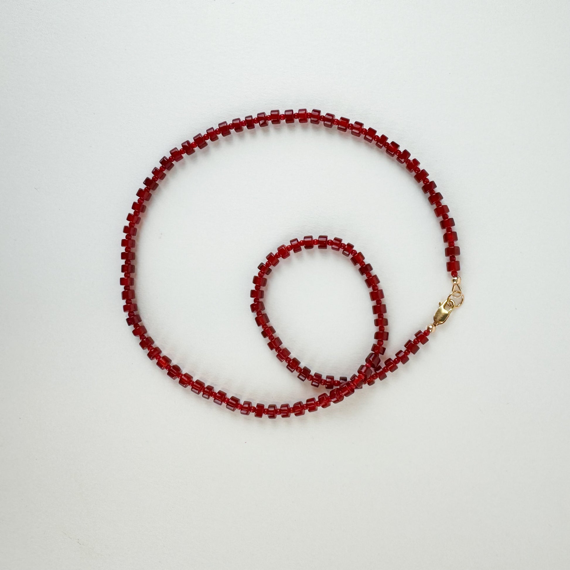 Bail, meaning Ox in Hindi, represents courage and strength. Using alternating carnelian stones and coral, this necklace is a meditative reminder to stay present and have courage.